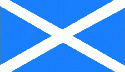 De vlag van Schotland bestaat uit een witte saltire op een donkerblauwe achtergrond. Een zelden gebruikte versie heeft een lichtblauwe achtergrond. Een vlag die officieel niet toegankelijk is voor het publiek, maar desondanks vaak wordt gebruikt, heeft een rode rijzende leeuw omringd door dubbele "fleur-de-lis"-balken op een gele ondergrond. Dit is de Schotse koninklijke vlag ("Lion Rampant"). De Schotse vlag is een van de oudste vlaggen ter wereld en dateert uit de 9e eeuw. Volgens een overlevering voerde koning Hungus (of Angus) in 832 de Picten en Schotten ten strijde tegen de Angelsaksen. Hungus en zijn soldaten werden omsingeld en hij bad om bevrijding. Tijdens de nacht verscheen de apostel Andreas (die aan een diagonaal kruis was gekruisigd) en hij verzekerde Hungus dat zijn leger zou overwinnen. Bij zonsopgang namen de wolken aan de blauwe hemel de vorm aan van een diagonaal kruis. De Picten en Schotten werden aangemoedigd, terwijl de Angelsaksen doodsbang waren en uiteindelijk werden verslagen. Sindsdien is het Andreaskruis de vlag van Schotland. Er is geen exacte officiële definitie voor de tint blauw. Het gebruikte blauw varieerde door de eeuwen heen van licht hemelsblauw tot donker marineblauw. Volgens een grap was de keuze van de tint gebaseerd op welke tint blauw het goedkoopst verkrijgbaar was. Recentelijk lijkt men het echter eens te zijn geworden over de Pantone 300 tint. Welke kleur er ook wordt gebruikt, hij moet altijd lichter zijn dan die van de Union Jack. De maatverhouding is ook niet officieel vastgelegd, maar wordt over het algemeen gegeven als 5:3 of 3:2 (de eerste versie heeft de voorkeur). De breedte van de dwarsbalken moet een vijfde zijn van de hoogte van de vlag.(Wikipadia)
